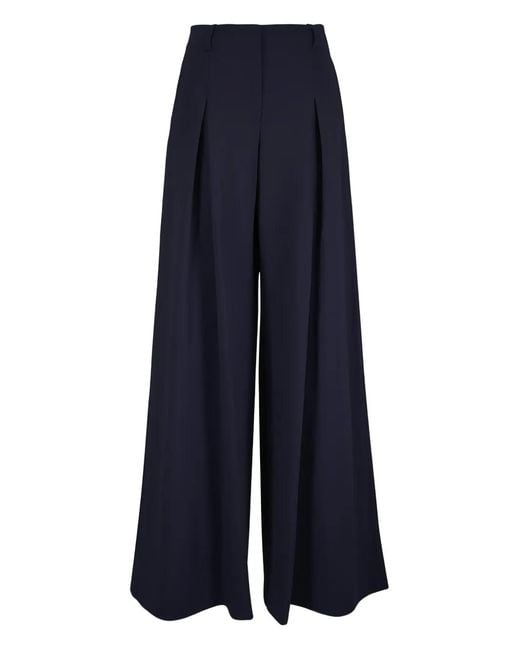 Women's Blue Doubleface Wool Pallazo Pants