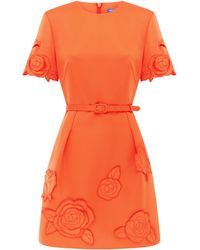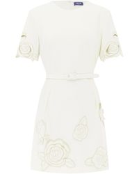 Go to Moda OperandiShort sleeve, belted, laser-cut detailing, embroidered appliqués, A-line, mini hem. Concealed zip fastening along back. Lined. Composition: 94% Polyester 6% Spandex/ Lining:100% Polyester. Dry clean only. Spring/Summer '25. Colour: white