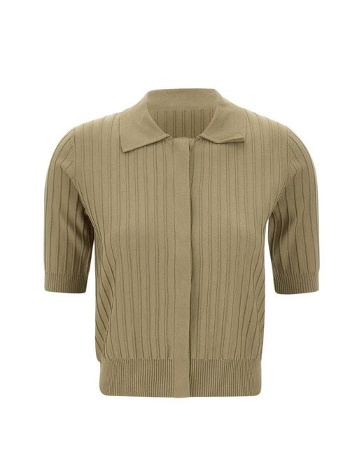 Women's Green Rib Knit Short-Sleeve Cardigan