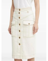 Go to FARFETCHBeige side pockets logo plaque high-waisted tonal stitching concealed fastening Size: 38. Gender: Female. Material:Viscose/Polyamide/Polyester. Colour: natural