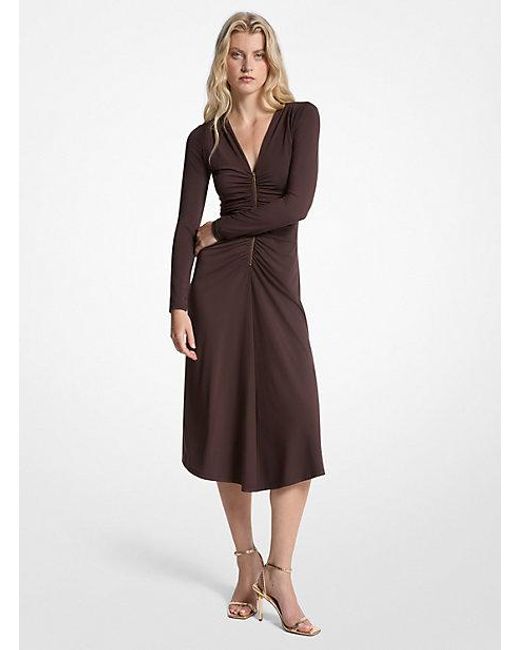 Women's Brown Ruched Stretch Matte Jersey Dress