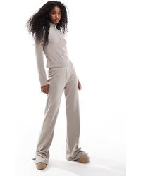 Pants & Leggings by Miss Selfridge Regular rise Elasticated waist Lettuce edge trim at cuff Kick flare leg Slim fit. Cotton. Colour: blue