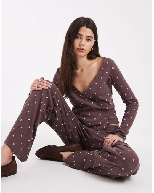 Women's Brown Wide Leg Pointelle Lounge Trouser Co-ord