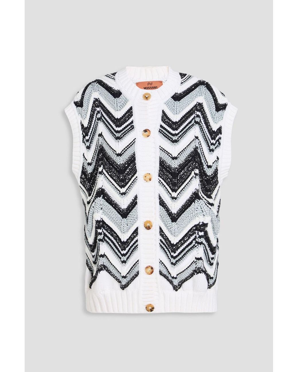 Women's White Sequin-Embellished Metallic Intarsia-Knit Vest