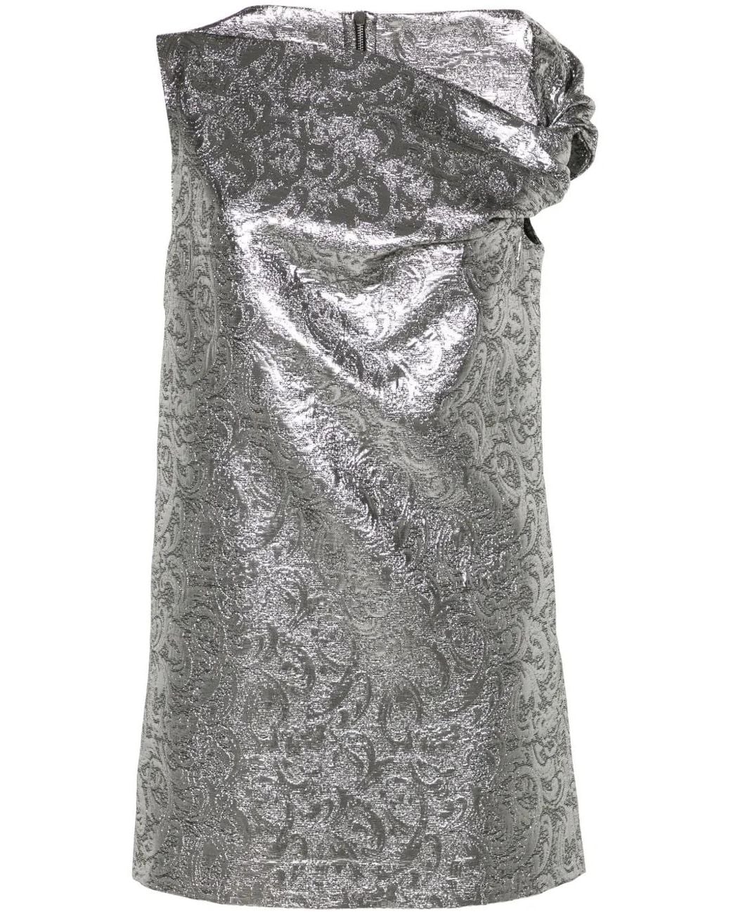 Women's Grey Brocade Effect Sleeveless Mini Dress