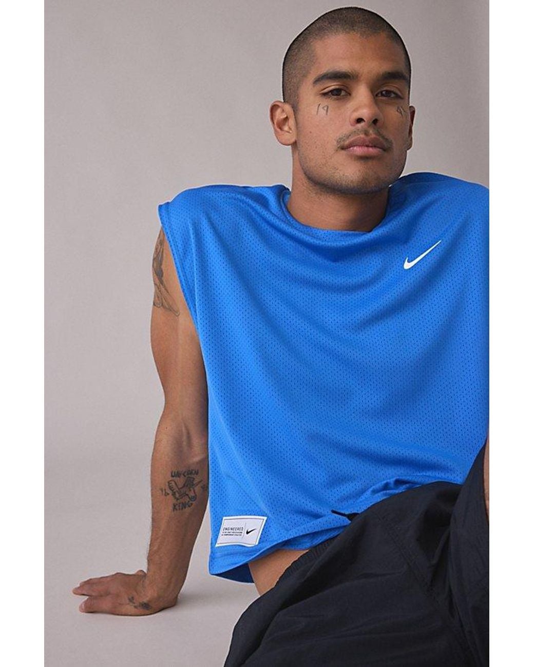 Men's Blue Cropped Mesh Tank Top