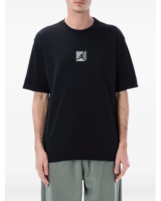Men's Black Print-Detail Crew Neck T-Shirt