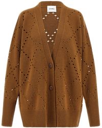 Go to BaltiniRibbed wool cardigan, front zip closure, high neck, 3/4 puff sleeves with cuffs, asymmetrical hem with pointed front. Gender: Women. Material: 80% WOOL, 20% POLYAMIDE. Color: BROWN. Made in: IT. Product ID: 1101W2554608.