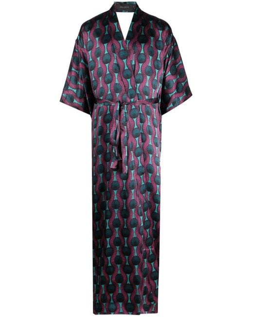 - Printed Silk Kimono Dress