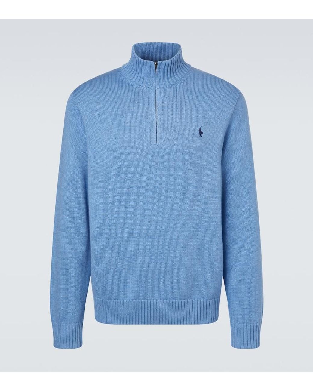Men's Blue Cotton Half-Zip Sweater