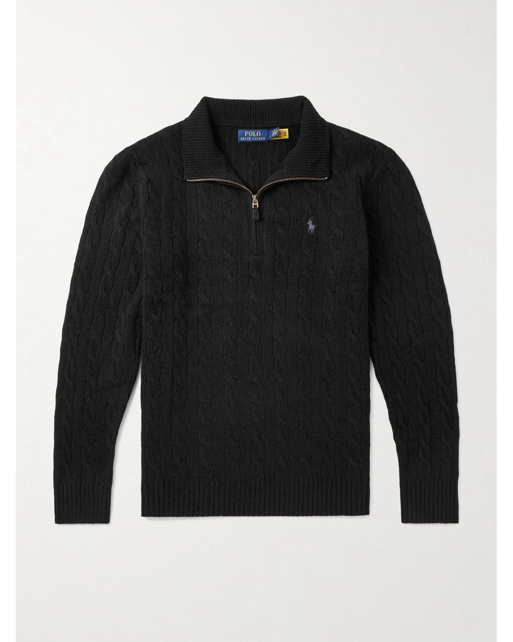 Men's Black Logo-embroidered Cable-knit Wool And Cashmere-blend Half-zip Sweater