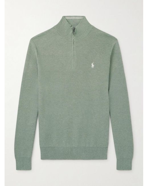 - Logo-Embroidered Cotton Half-Zip Sweater