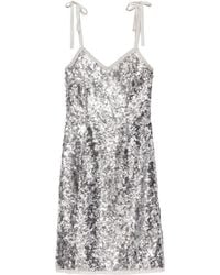 Go to BaltiniPrada dress with silver sequins all over, featuring adjustable straps, a V-neckline, and a side zip closure.. Gender: Women. Material: Fabric I: 100% Recycled Polyamide / Lining: 100% Silk. Color: METAL. Made in: