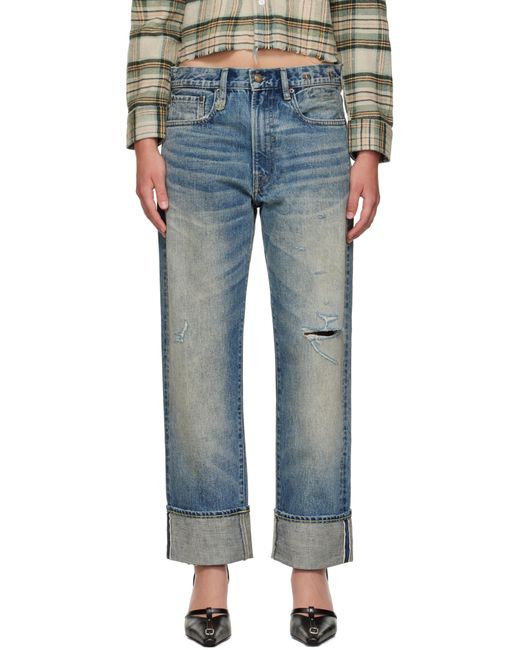 Women's Blue Cuffed Boyfriend Jeans