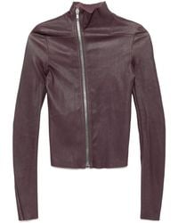 Go to BalardiA striking jacket made from premium distressed leather, enhanced by a plush shearling lining at the collar, hem, and cuffs. The adjustable high collar offers versatility, while the front zip closure and zippered