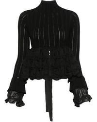 Go to FARFETCHCream smocking detail ruffled trim off-the-shoulder neckline short sleeves asymmetrical hem Size: 36. Gender: Female. Material:Polyester/Silk. Colour: white