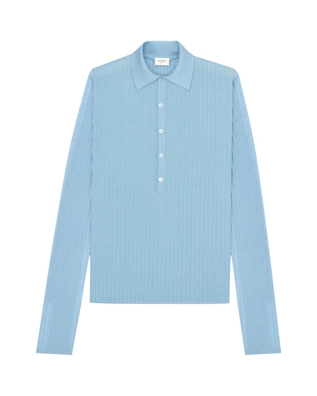 Men's Blue Cashmere-Wool-Silk Polo Shirt