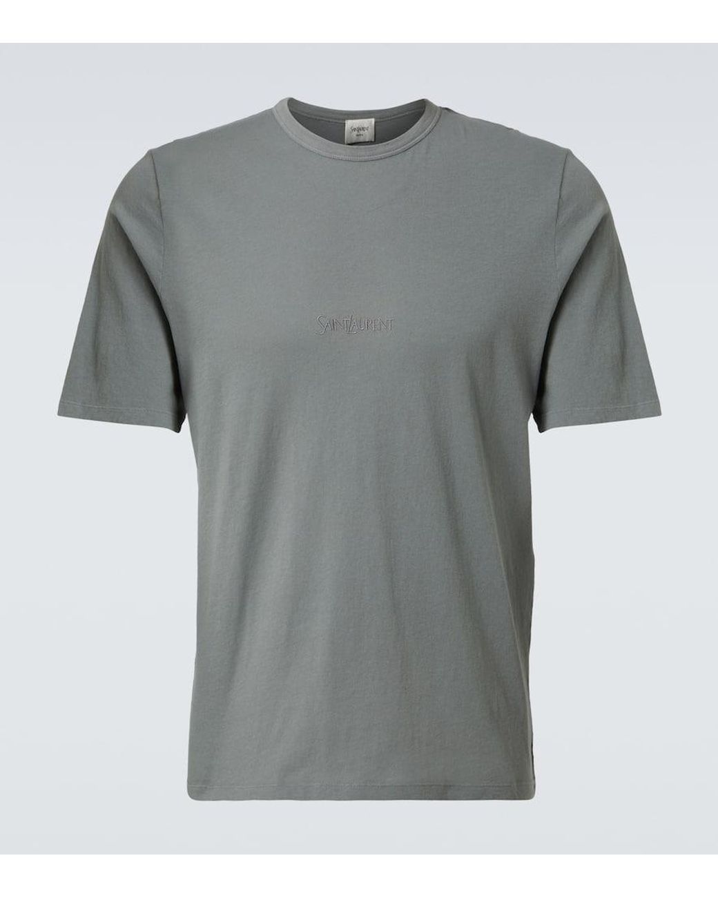 Men's Grey T-Shirt With Round Neck And Logo Lettering Embroidery On The Front