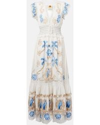 Sleeper Women's Blue Linen Embroidered Petra Maxi Dress