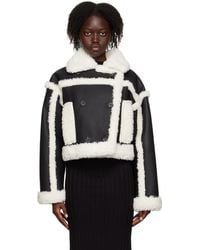 Go to FARFETCHCedar brown/black faux leather double-breasted button fastening faux-shearling trim faux-shearling collar long sleeves with faux-shearling cuffs two side welt pockets faux-shearling lining straight hem cropped Size: 34. Gender: Female. Material:Polyurethane/Polyester. Colour: black
