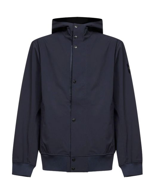 Men's Blue Jacket With Hood And Water- And Wind-Resistant Membrane