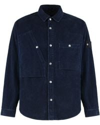 Go to SavaitOvershirt in denim made with indigo-dyed cotton twill with 4 yarns and features chest pockets, snap closure, and a Stone Island Denim Research badge. Rinsed finish. The long sleeves with button cuffs provide