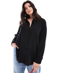Tops by Stradivarius Plain design Spread collar Button placket Drop shoulders Relaxed fit. Viscose/Cotton/Linen. Colour: blue