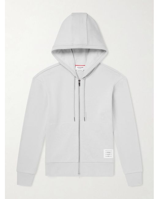 Men's White Striped Colour-block Cotton-jersey Zip-up Hoodie