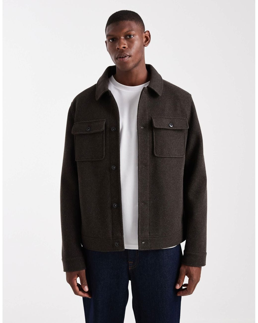 Men's Black Shacket With Front Pockets