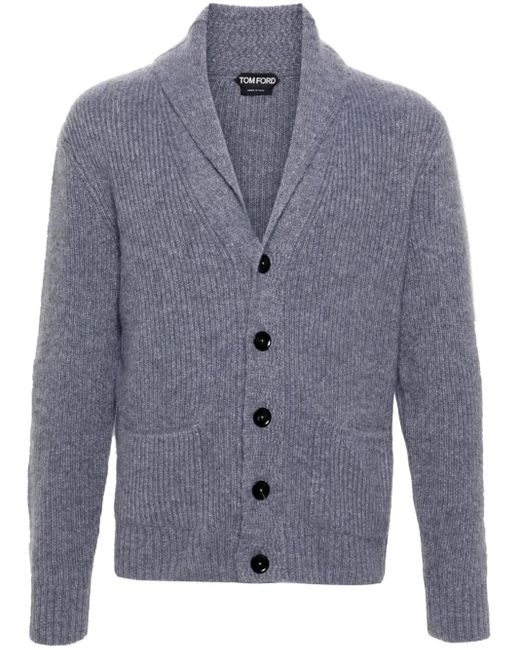 Men's Blue Shawl-Collar Ribbed Cardigan