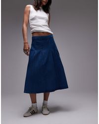 TOPSHOP Women's Blue Denim Seamed Full Midi Skirt