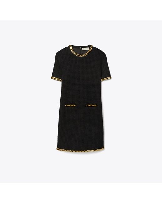 Women's Black Chain-Trimmed Wool-Blend Dress