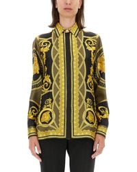 Versace Women's Yellow Silk Cheetah Foulard Shirt
