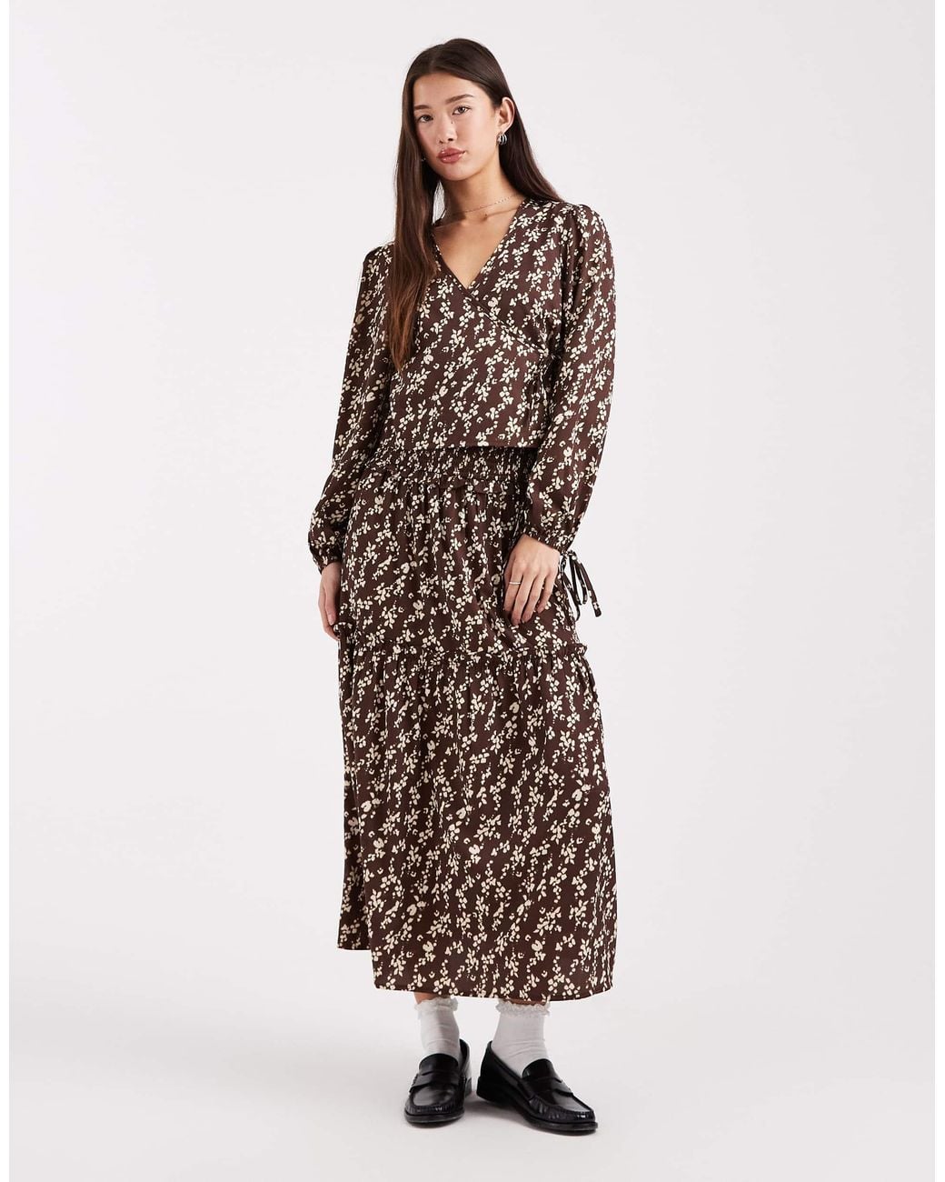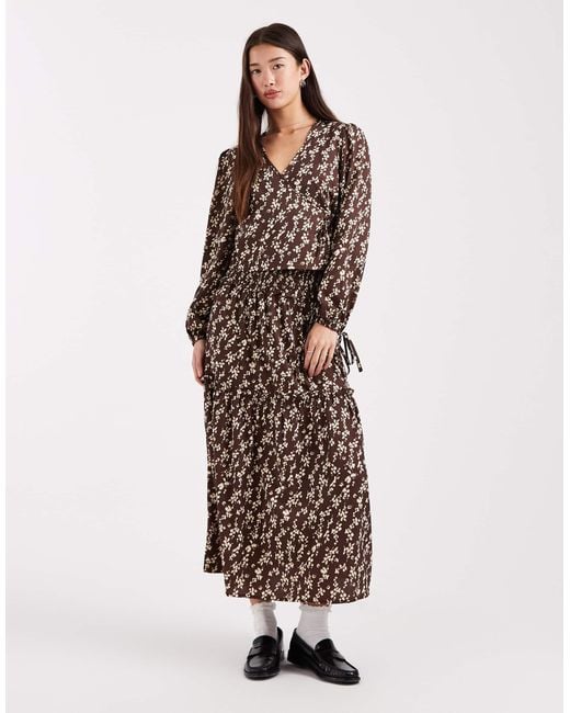 Women's Brown Ruffle Detail A-line Midaxi Skirt
