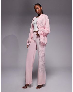 Daria Velour Rhinestone Logo Detailing Track Pants - Pink