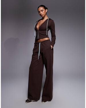 Beau Double Lace Trim V Front Flared Trouser Co-ord - Brown