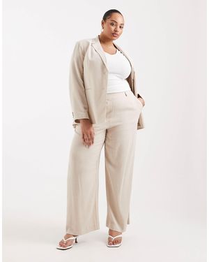 Pieces Curve Tailored Short Blazer & Wide Leg Trouser Co-Ord - Natural