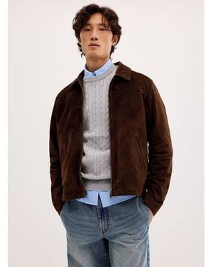 Minimalist Suede Jacket - Brown