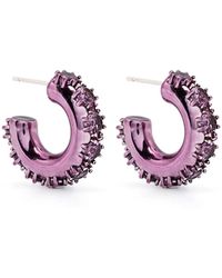 Go to SSENSEPair of handcrafted anodized brass open hoop earrings in purple. · Prong-set crystals throughout · Post-stud fastening · D0.75 Supplier color: Purple Colour: black