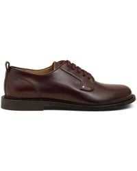 Go to SSENSEPolished calfskin derbys in black. · Lace-up closure · Pull-loop at heel tab · Logo stamp at padded leather footbed · Buffed leather and suede lining · Serrated edge at welt · Logo