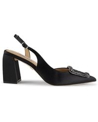 Go to FARFETCHWhite satin finish buckle-fastening slingback strap 75mm stiletto heel rhinestone embellishment pointed toe branded leather insole leather sole Size: 8.5. Gender: Female. Material:Calf Leather/Silk Organza/Calf Leather/Satin. Colour: white