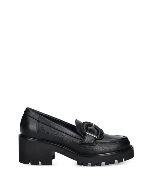 Women's Black Buckle Lug-Sole Heeled Loafers