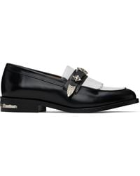 Go to SSENSEPolished leather loafers in black. · Square moc toe · Fringed detailing and tassels at vamp · Pull-loop at heel collar · Calfskin suede lining · Inset logo hardware at covered block heel
