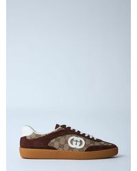 Go to FARFETCHBlack calf leather panelled design signature Interlocking G logo plaque perforated detailing front lace-up fastening round toe branded leather insole leather sole. Colour: black