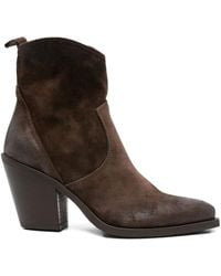 Go to BaltiniTexan Ankle boots in taupe suede, slip on, pointed toe, side pulltab, stitching detail, leather sole, 50 mm heel, Made in Italy, 100% suede. Material: SUEDE. Made in: IT. Colour: brown