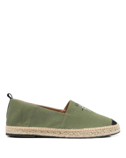 Men's Green Logo-Print Leather-Trim Espadrilles