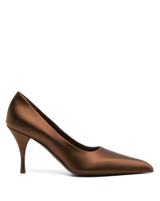 Women's Brown Pointed-Toe Satin Pumps