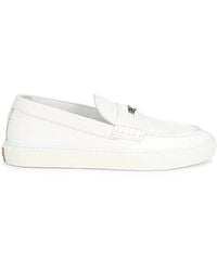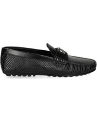 Go to Saks OFF 5THRoberto Cavalli's slip-on loafers are crafted of smooth leather with a sleek, minimal silhouette. Made in Italy, this pair is set on a leather sole and finished with a refined almond toe. Round
