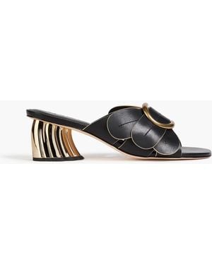 Embellished Leather Sandals - Black