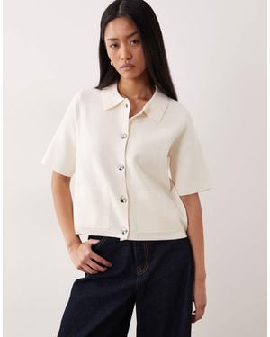 Short Sleeve Knitted Cardigan - Natural